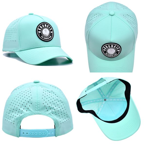 Curve Peak 5 Panel Sport Cap With Rubber Patch Logo Laser Holes On Back Images |